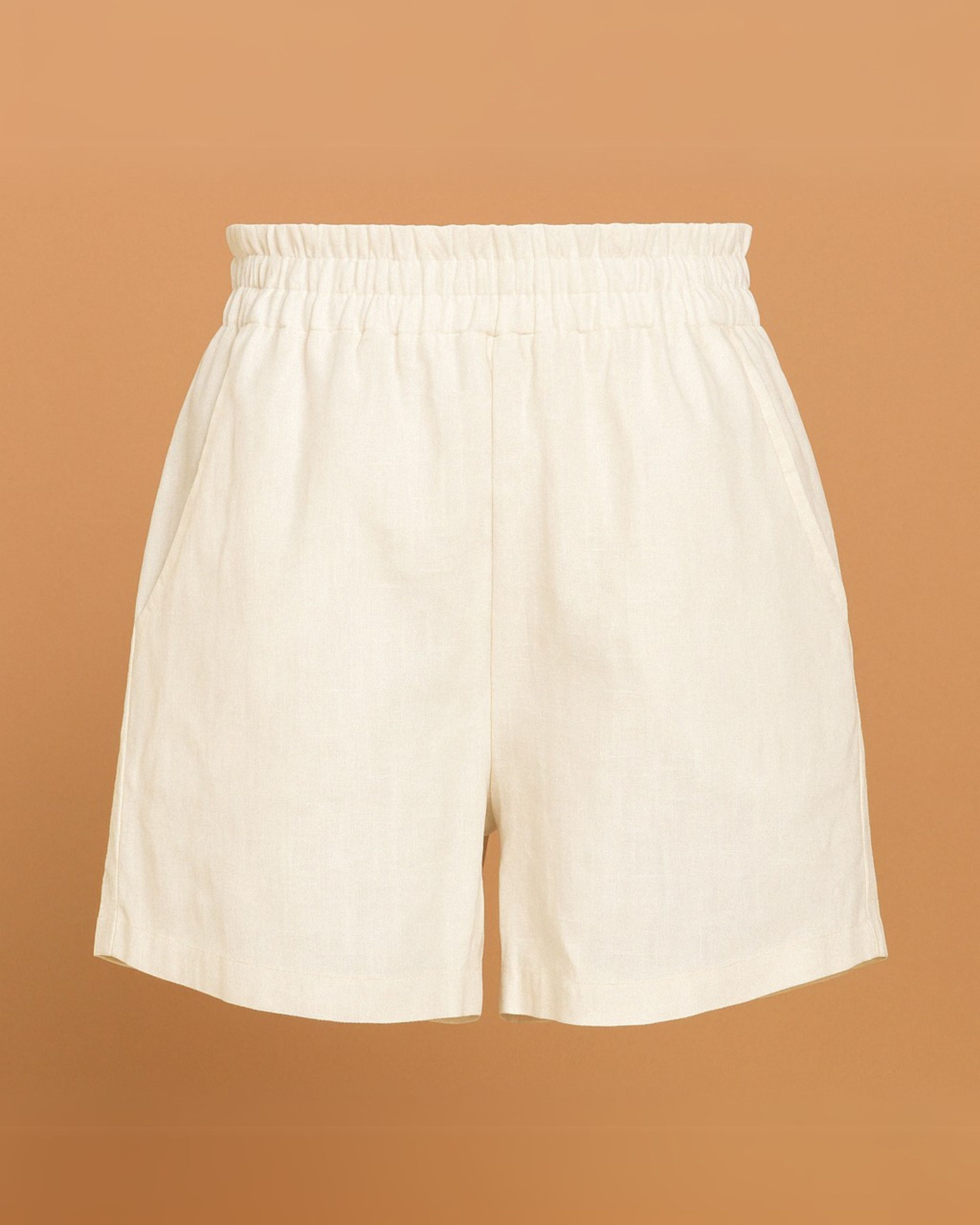 Breezy, comfy, and effortlessly chic — these Off white linen shorts are your new summer essential. Crafted in lightweight linen, they feature an elasticated waistband for all-day comfort and minimal side seam pockets for functionality. The relaxed fit and clean finish make them perfect for lounging, errands, or quick getaways. Designed to match your pace, they pair beautifully with almost everything in your wardrobe.